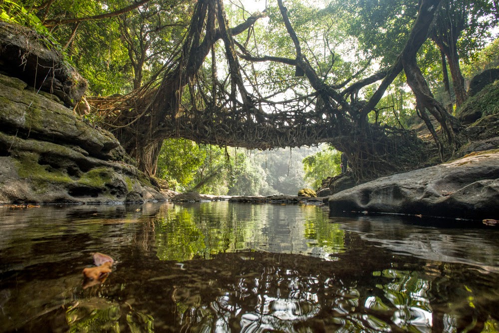 These remarkable pedestrian bridges grow naturally from the aerial roots of fig trees. The Megahalaya root bridges thrive in the East Khasi Hills, a remote district of northeast India. To grow your own follow these steps: near the base of a suitably large fig tree, lay a betel nut trunk over the stream you wish to cross; train the fragile young aerial roots over the surface; when they grow to reach the other bank let them take root in the soil and remove the tree trunk. In several years time, you can cross.