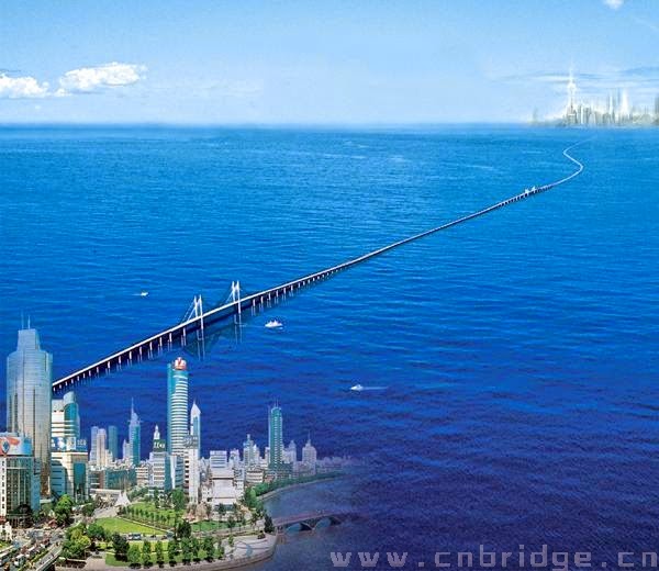 | Hangzhou Bridge, China —– 22 miles across the ocean |
