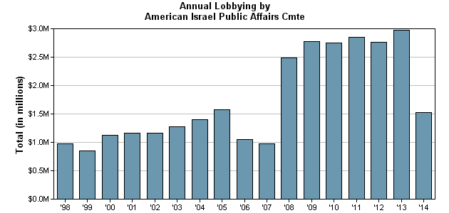 Since 1998, AIPAC has spent $20,269,436 lobbying on the Hill, according to the Center for Responsive Politics, a nonpartisan organization dedicated to tracking money in politics.