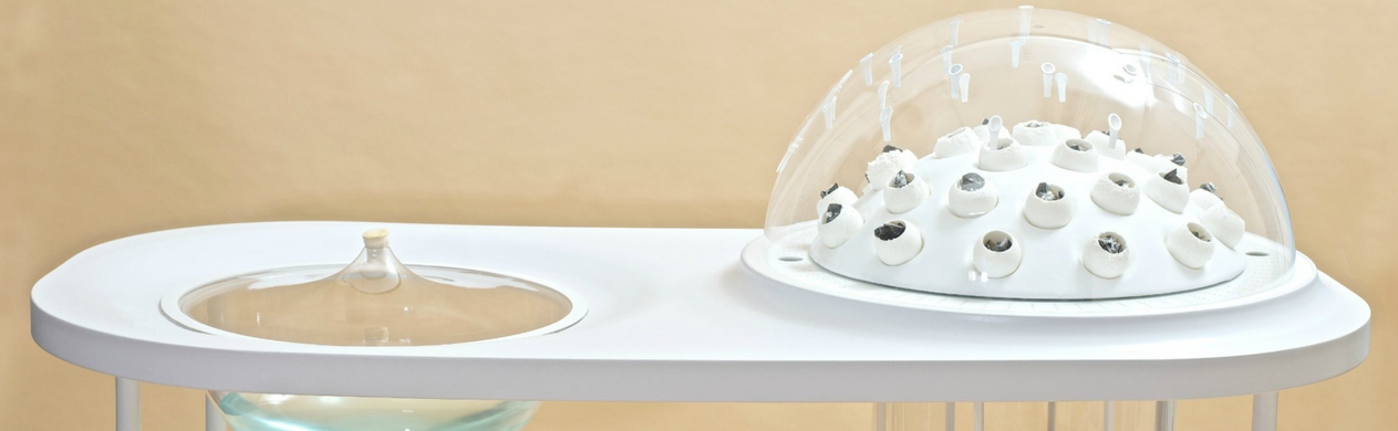 Two Vienna-based industrial designers created the mutarium in collaboration with microbiologists from the University of Utrecht in the Netherlands. Katharina Unger, one of the designers, said she and her colleague were interested in working with ingredients that are not usually considered food. They were paired up with Han Wösten, the head of the biology department at Utrecht, through the Bio Art & Design award, a grant that connects scientists with designers.